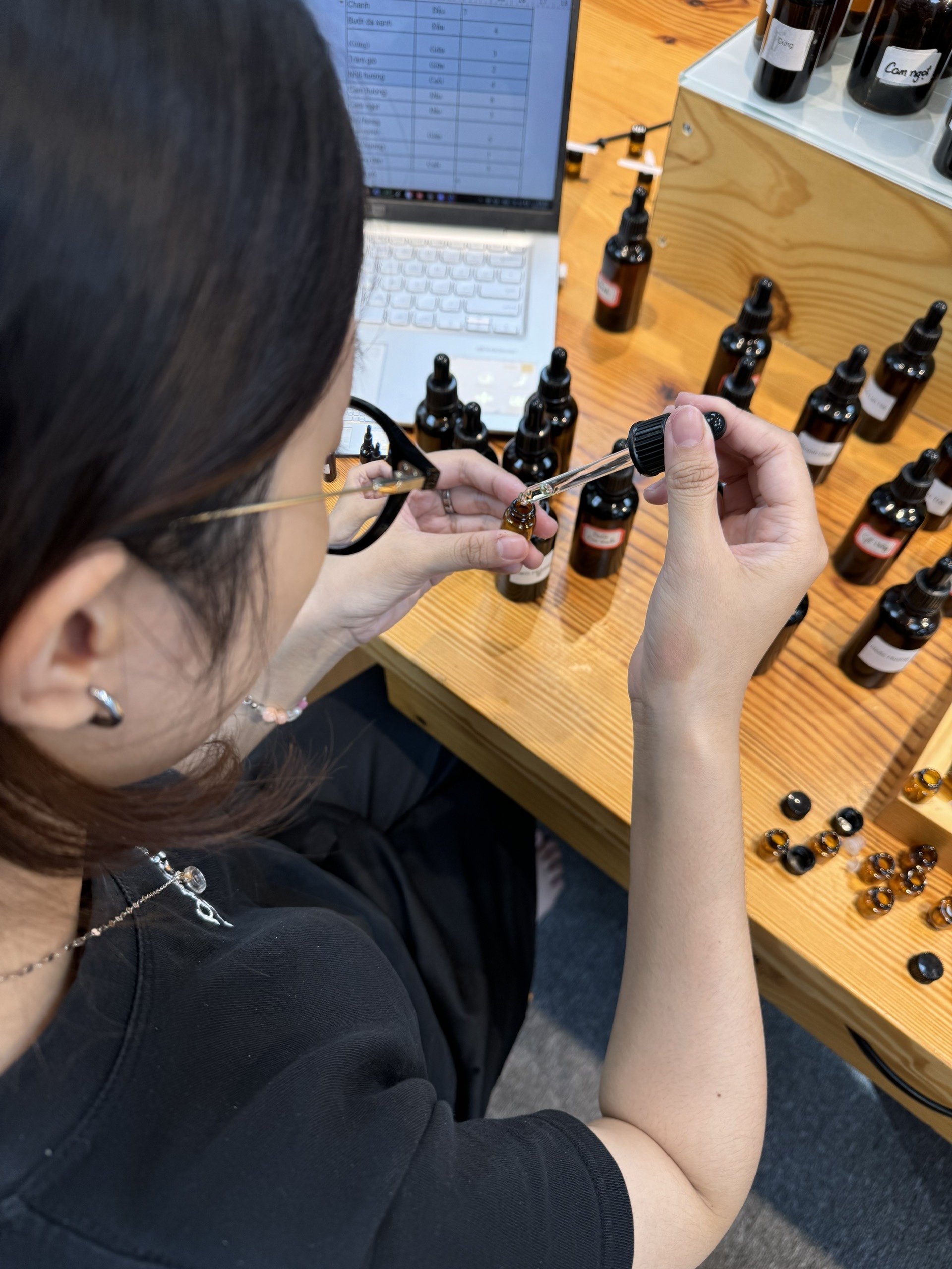Over 8 years of running Julyhouse, I observed a hidden pain point: Customers standing bewildered before dozens of essential oil bottles. What smells good to one is overpowering to another.Trong suốt 8 năm điều hành Julyhouse, Lâm quan sát thấy một 'nỗi đau' thầm kín của khách hàng: Họ đứng trước hàng chục lọ tinh dầu, bối rối không biết chọn gì. Mùi này thơm với người này, nhưng lại nồng với người kia.